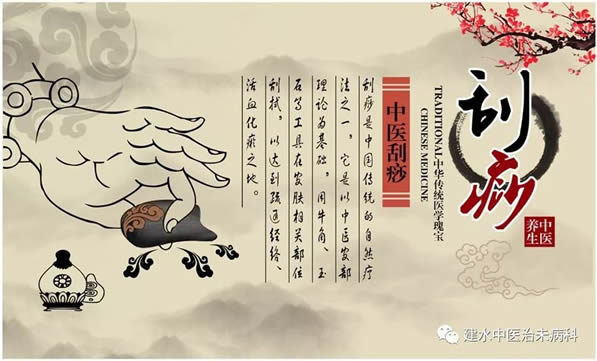 刮痧是在中医经络腧穴理论指导下,应用边缘钝滑的器具,如牛角类、砭石类等刮板或匙,蘸上刮痧油、水或润滑剂等介质,在体表一定部位反复刮动,使局部出现瘀斑,通过其疏通腠理,驱邪外出;疏通经络,通调营卫,和谐脏腑功能,达到防治疾病的一种中医外治技术。
