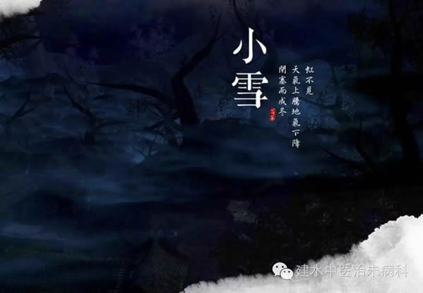 进入该节气,中国广大地区西北风开始成为常客,气温下降,逐渐降到0℃以下,但大地尚未过于寒冷,虽开始降雪,但雪量不大,故称小雪。此时阴气下降,阳 气上升,而致天地不通,阴阳不交,万物失去生机,天地闭塞而转入严冬。黄河以北地区会出现初雪,提醒人们该御寒保暖了。