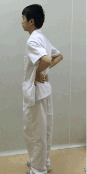 a.两脚分开站直,双手放在后腰部,四指靠在脊椎两侧