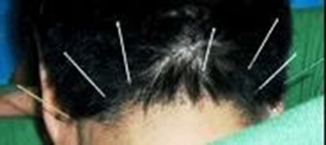 操作:嘱患者取俯伏坐位,局部常规消毒。选取0.30mm×40 mm一次性毫针,风府向下颌方向刺入12~25 mm,风池向鼻尖方向斜刺20~30 mm,天柱直刺12~20 mm,完骨向耳内方向斜刺12~20 mm,各穴均进针得气后采用提插捻转平补平泻手法,留针30 min,中间行针1次。每日1次,10次为一疗程。