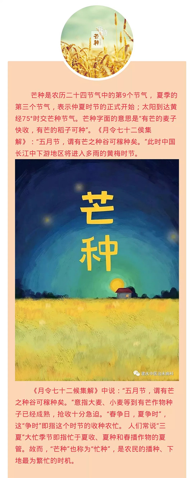 在芒种这个节点上,我们可以采用中医的传统治疗,来对我们的身体进行调养,建水县中医医院治未病科,针对不同体质的人群,也开展了特定的传统治疗项目,下面,给大家推荐芒种期间的传统治疗吧!