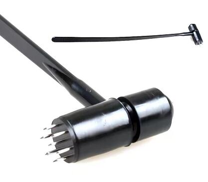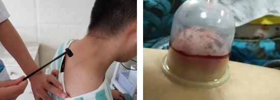 首先,使用经络检查法,用拇指的指腹在患者体表反复循按,触摸、推压,找出病区及邻近部位和脊柱及其两侧的阳性反应处,如条索状物、结节状物、泡状软性物等,或是酸、痛、麻木等感觉异常处。检查时要有耐心,注意询问患者,观察患者的表情,找出阳性反应处时应立即打上标记,以免在叩刺中遗忘或再次寻找浪费时间和精力。因为这些阳性反应处是非常重要的叩刺治疗部位。即梅花针治疗的首选部位。阳性反应物的多少与病情的轻重多成正比,多则病重,少则病轻。我们的临床经验证实,叩刺后随着阳性反映处的减少和减小,疾病就随之逐步减轻,阳性反应处彻底消失后,疾病就痊愈了。如慢性气管炎,在第一胸椎至第八胸椎两侧及腰部有条索状物及压痛,颌下有结节,如慢性胃炎在第五胸椎至第十二胸椎两侧有结节,条索状物及泡状软性物,如慢性盆腔炎在小腹、腰、骶、腹股沟有结节及条索状物,坚持长期叩刺这些疾病的阳性反映处后,均能使其逐渐消失而达到治愈的目的。若阳性反应物较多,病属顽固,需耐心长期叩刺方可治愈。